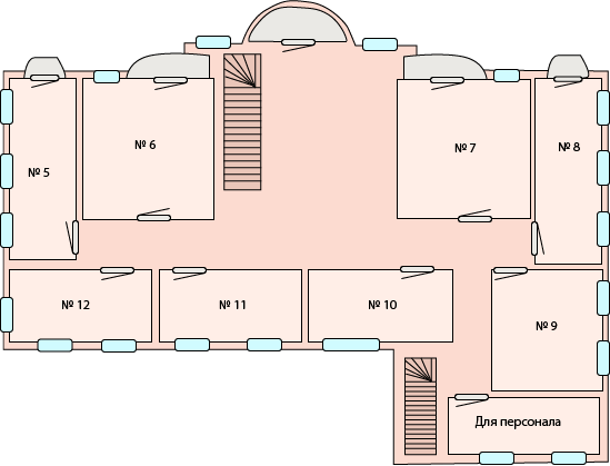 В гостинице всего 12 номеров, два из которых (№ 6 и № 7) - люкс.